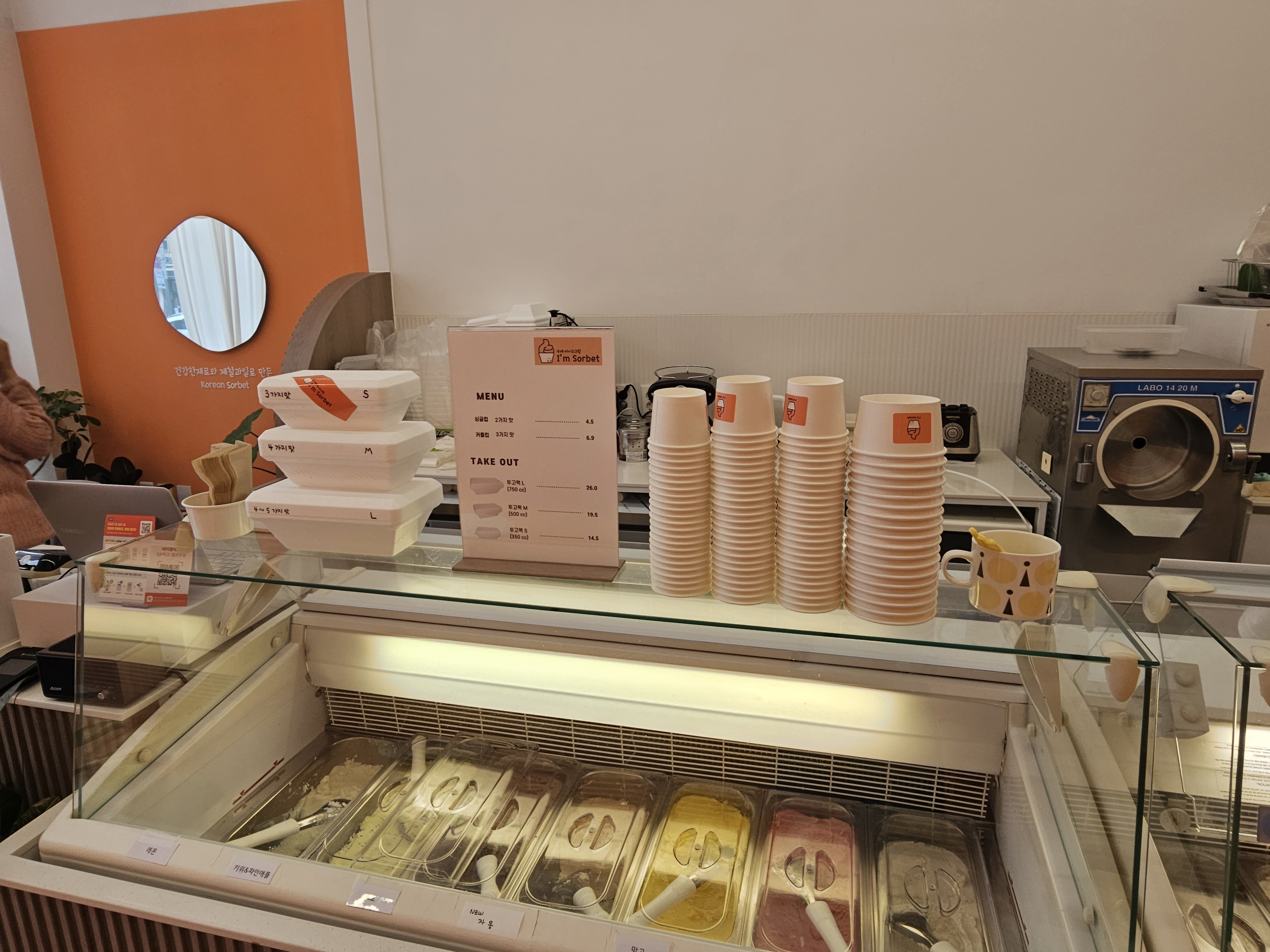 하필 이 날 더웠던 날 자전거를 한 시간 타고 갈증이 나서 아이스크림을 찾다가 들어오게 된 아임소르베